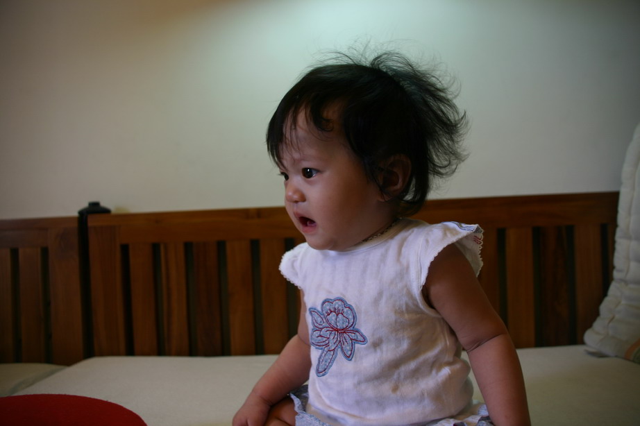 照例,她見到醫生後的反應仍是哇哇大哭與尖叫(嘿!聰明的小孩),醫生問我她是否每次看到醫生都是這種反應,我告訴醫生這是她一貫的現象,醫生居然對她認真的說『我不是醫生,我是廚師』,這醫生也太可愛了吧,才6個月的小孩哪知道職業的分別,真是笑死我了。醫生給她做了必要的檢查,判斷她是扁桃腺發炎導致發燒,這樣我就放心多了,聽醫囑按時服藥就可以。