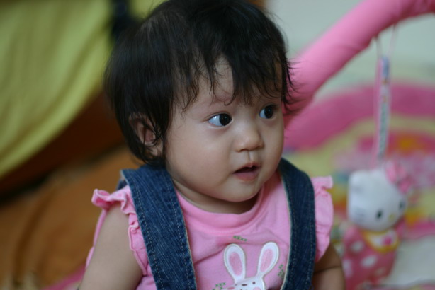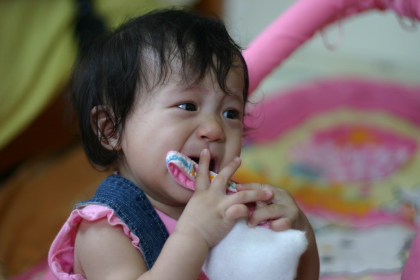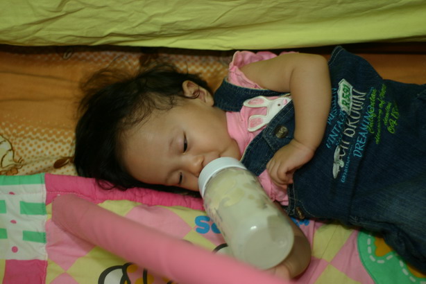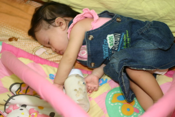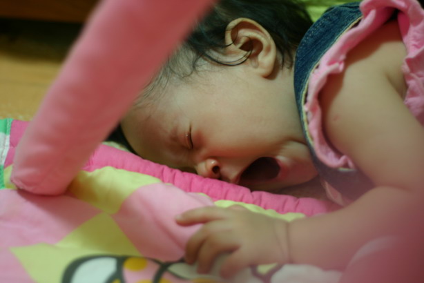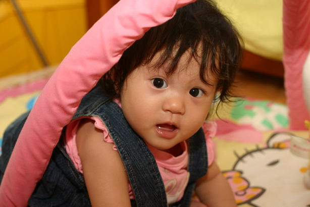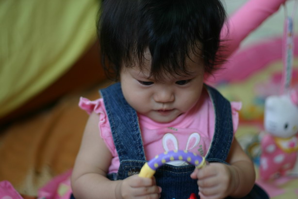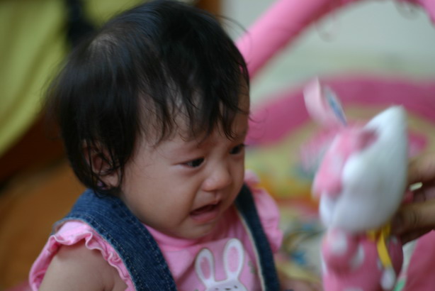 不好玩,固齒器也沒意思。一臉茫然的小嬡要做什麼好呢?咬Hello Kitty發洩一下壞心情。哭鬧了半天的小嬡,原來是想睡了。喝奶奶。睡覺去了! 辛樂克會走,可是小嬡颱風每天都會狂風暴雨好幾次。