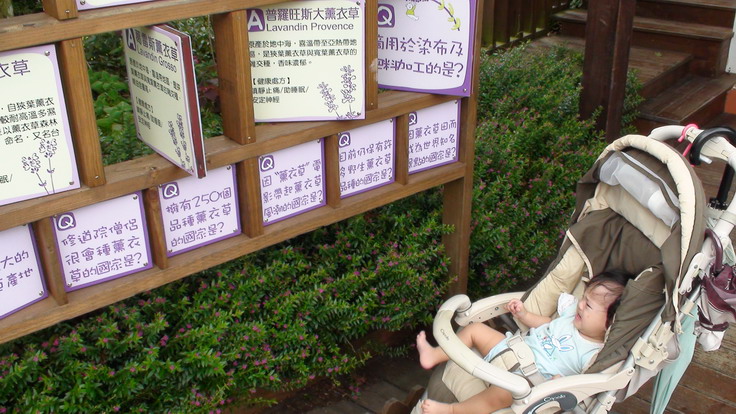 新社之旅第2天,安排了薰衣草森林之旅,這個聲名遠播的地方絕對不容我們錯過。中午退房後,在新社古堡旁吃完香姑餐後,本來打算要進古堡一遊,可是烈日當頭,想到要帶著勳寶和小嬡在豔陽下參觀,心中的烏鴉使我們卻步,只好跟古堡說有緣再來啦!