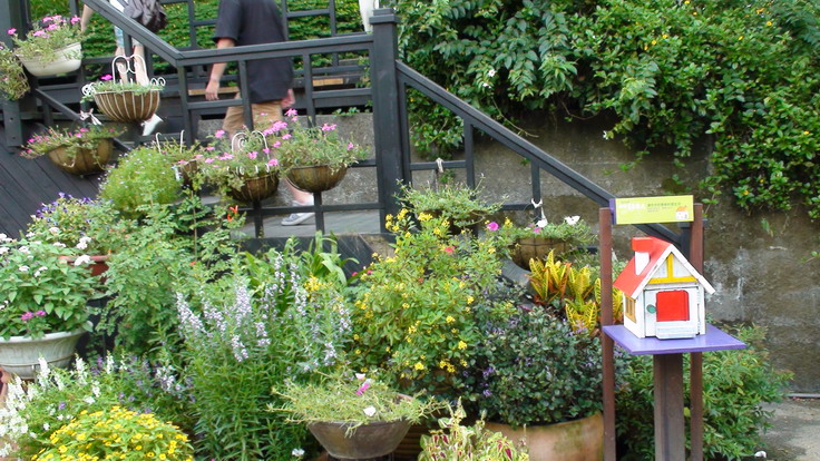 遊客很多,服務人員也相當多,禮貌且親切,入園後看到的是小廣場和木屋。