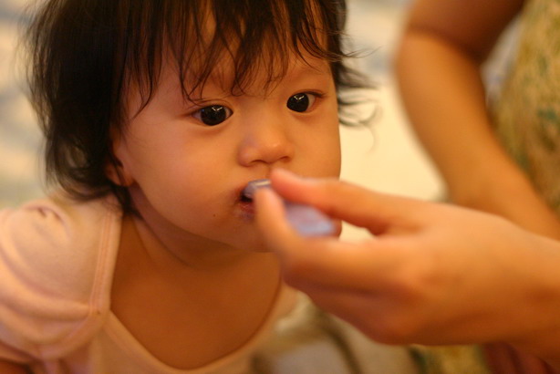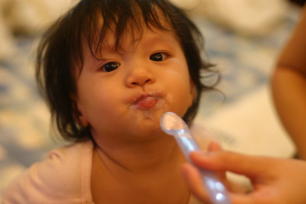拜託啦!再給我吃ㄧ口好不好?一口就好了。拜託啦!不然我要刮颱風喔!(好啦!算媽媽怕你,就只能吃ㄧ口喔。)