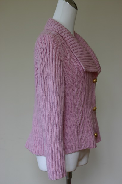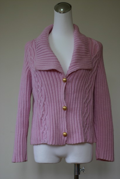 要放在Blog上的第4個作品是件開襟毛衣,起源於看到2005年某期日雜WITH上介紹COACH產品特輯的model展示商品時穿的粉紅色毛衣外套,樣式簡單大方,可以在「模樣編500」第103頁樣式342看到相同的花樣,在左右前片各有一主花樣,搭配花樣為2上2下。不多說了,馬上看基本資料。
