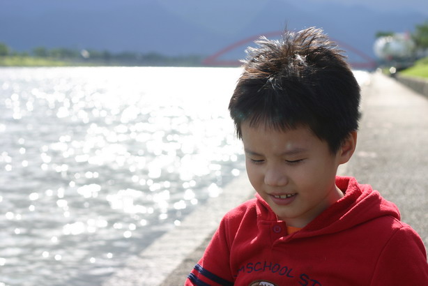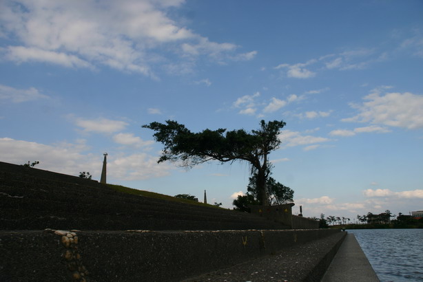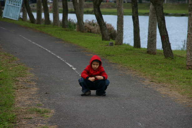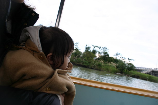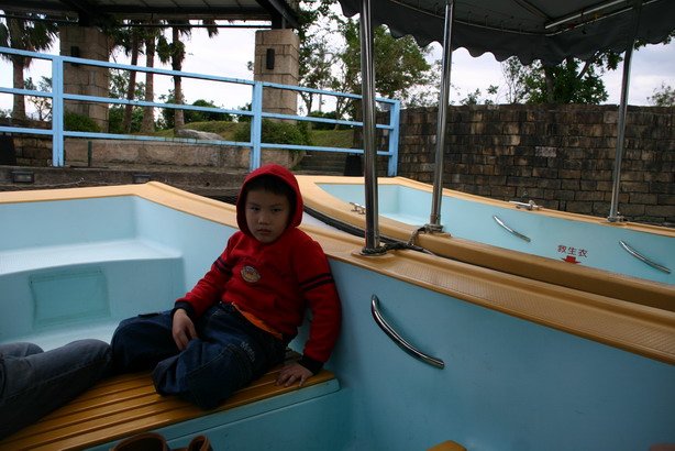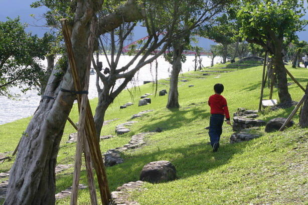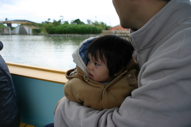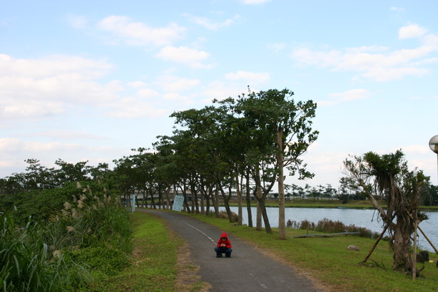 我們大約1點多抵達冬山河親水公園,遊客三三兩兩,說實話,沒什麼人來。不知道是因為秋末沒有特別的活動,還是大陸冷氣團發威,縱然太陽露臉但此時的冬山河公園籠罩著點點落寞,著實減低了我親臨『命中注定我愛你』場景的憧憬。帶著2個小baby的我們沒有租借腳踏車來遊園,選擇用雙腳來體驗冬山河。吹著冷風、沿著河邊散步的我們,一開始以很悠閒的心情出發。