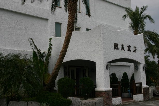 香格里拉渡假飯店旁的觀美旅店,原來觀美旅店真的叫觀美旅店啊!(這句好像繞口令,可真的是初見到它的我們心中閃過的訝異。)