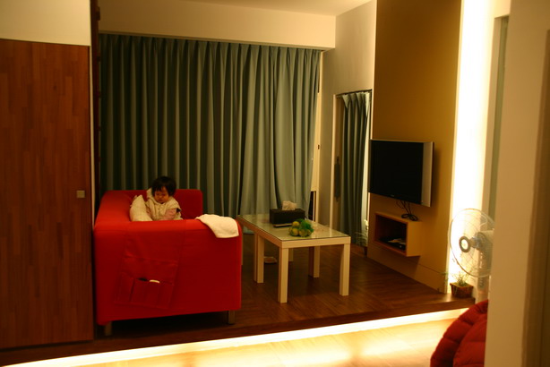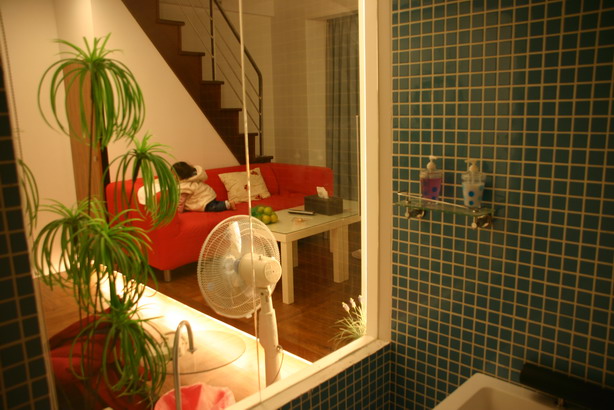 由浴室往外照(玻璃牆附有拉簾)