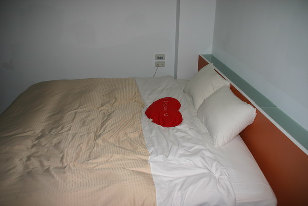 2天1夜的宜蘭行住宿是由妹妹安排的,她說同事住過口碑不錯,所以我們也抱著期待的心情入住。可是呢?想像與事實產生的相當的落差,由民宿外觀看來是個鐵皮屋,有點陳舊,是與姐妹民宿共用入口與停車場。先看看我們訂的景觀四人房實景圖。