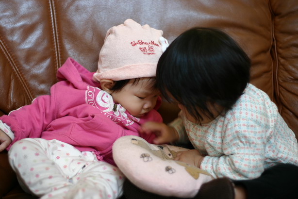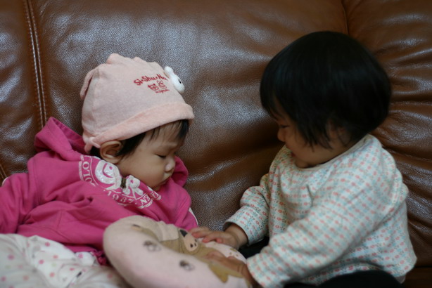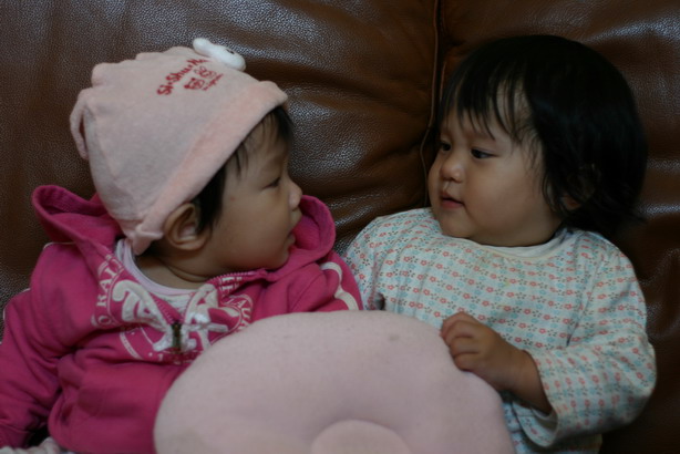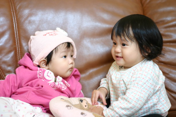 今天帶小嬡回娘家,小嬡和小沅宸又見面了,雙方今天都有意思一起玩玩,我們就讓她們姐妹來個大合照。老公、妹妹、妹夫人手一台相機,要幫我們家的2個姐妹花照相囉!