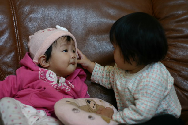 小嬡摸摸小沅宸,彷彿在跟她交流什麼娃娃話。