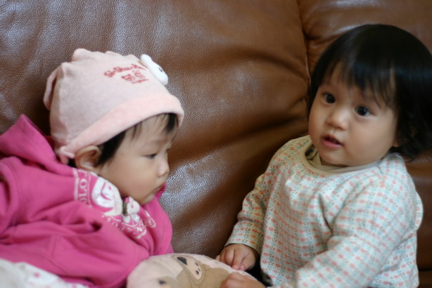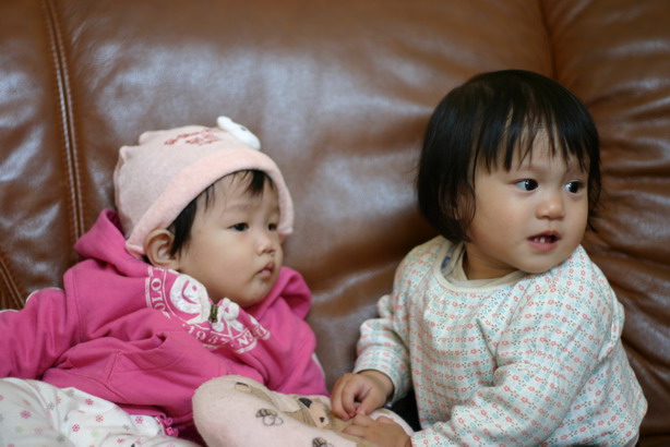 小嬡和小沅宸不知道大人們為什麼拿著相機們在拍她們(小沅宸一臉茫然,小嬡則是皺眉頭瞪著大家)