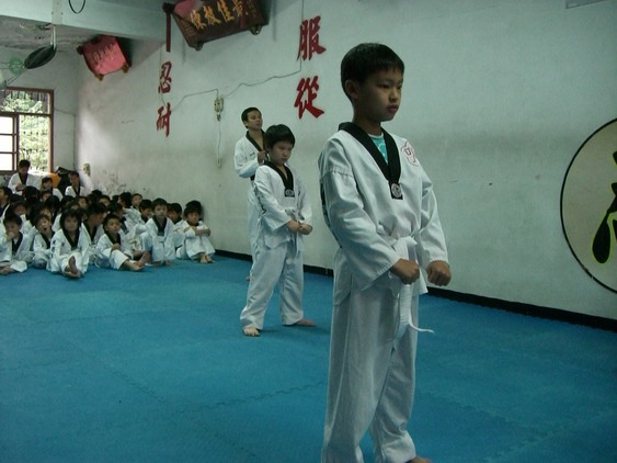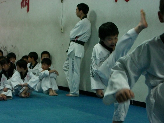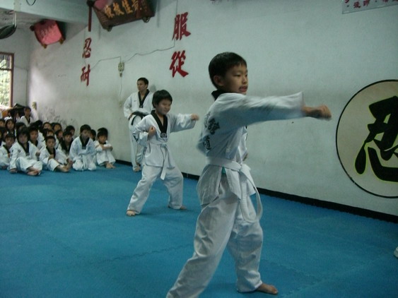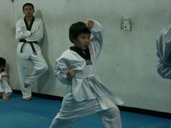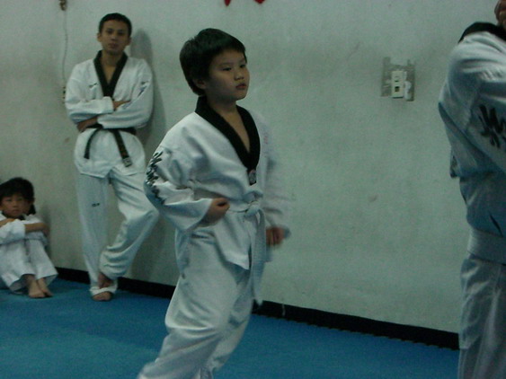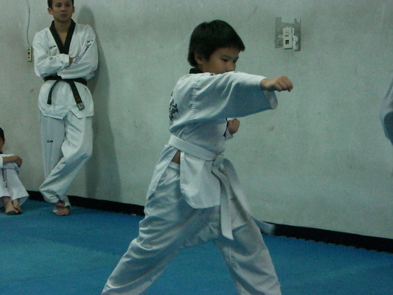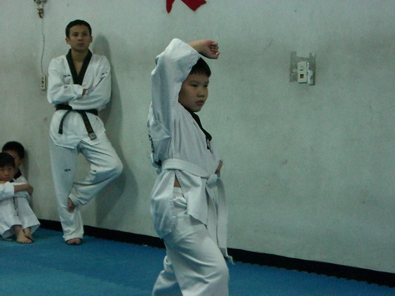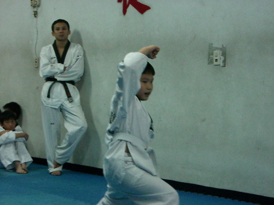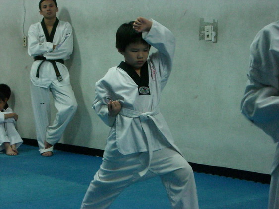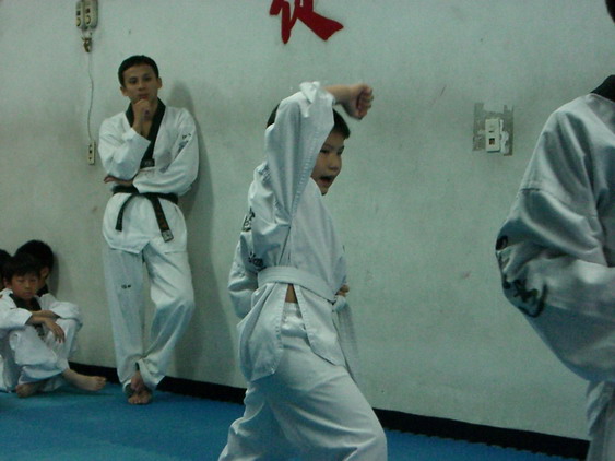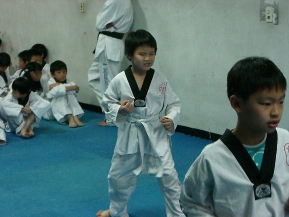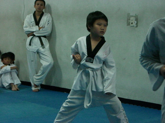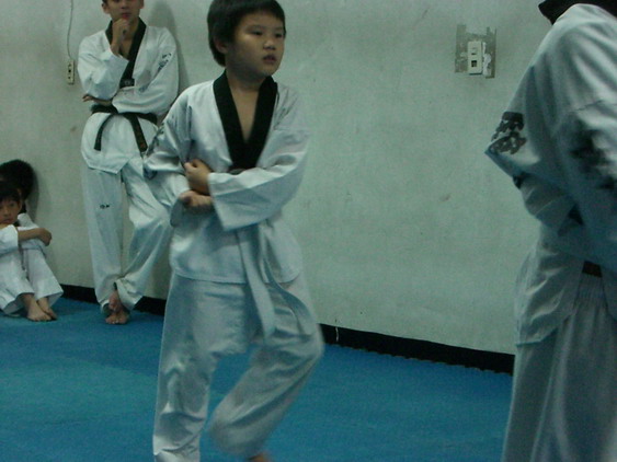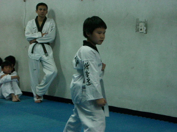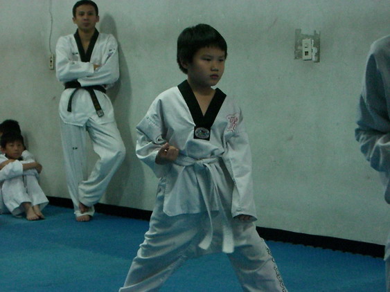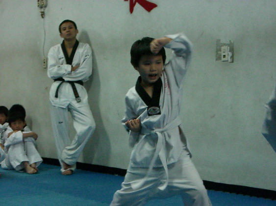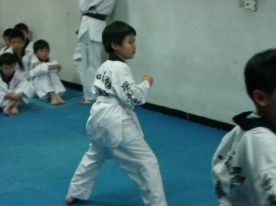 勳寶從一下開始學跆拳道,參加的是學校與道館合作的課後班,每週上課一次。本來老公讓他學的原意是可以有個給勳寶發洩小男生過剩的體力,並且減少他待在婆婆家看電視的時間。有時我們要勳寶在家打幾招表演一下,他都不肯,倒是說的一口嘴上跆拳。初學者是從白帶開始,勳寶一直沒有去升帶,最近他一直吵著說要升帶,老公要他和教練拿升帶報名表,預定今天帶他去升帶。