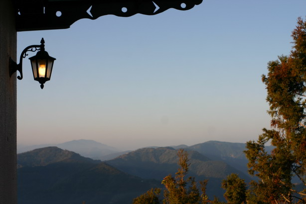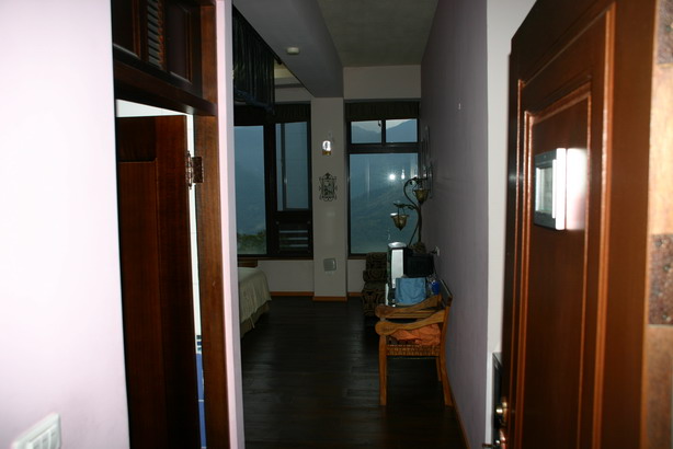 推開房門,有大片玻璃窗,窗外即是大片山景