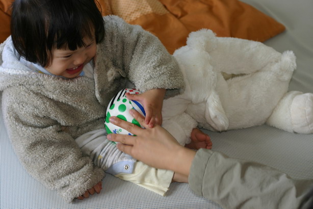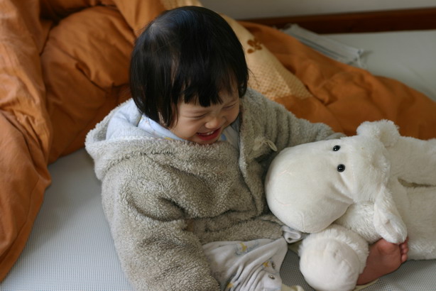 小嬡在3/4那天突然會走路了,不像之前只能走個5.6步,下班後過去婆婆家看到她興奮的到處走來走去,剛會走路的小嬡走起路來還不穩,像隻小熊在走路,看在我們大人的眼中真是非常可愛,都已經忘了勳寶剛學會走路是否也和小嬡用相似的走法,只記得勳寶是在某次帶他去游泳池玩水後,就走得很穩了。週末帶小嬡回家,她也是有事沒事就在家中熊步,一下到書房看老公在做什麼,一下到客廳看我打毛線,一下去忙著打電動的勳寶旁晃晃,現在她的小世界最重要的事大概就是走路了,也許每個人在這個階段都是這樣努力的想用腳步快速的帶自己到想去的地方體驗這個世界的一切。看小嬡這樣樂在走路中的我,心裡真為她感到高興,這是人生重要的起步期,以後的每一刻都能用雙腳親自前往體會。