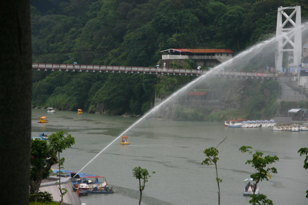 今天下雨所以搭船遊湖的人不多。我喵了一下價錢,1人1小時是150元。