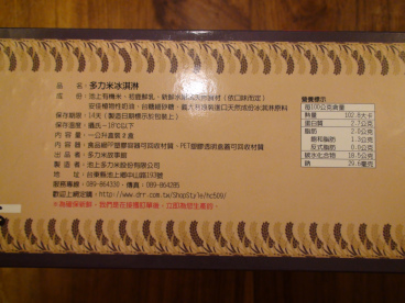 成份說明。當然有池上有機米、初鹿鮮奶、新鮮水果或天然食材、安佳植物性奶油、台糖細砂糖、義大利原裝進口天然成分冰淇淋原料。熱量是每100g含102.8大卡,Haagen Daz抹茶口味每100g熱量為218大卡,香草口味是223大卡,看起來多力米冰淇淋的熱量真的少很多,給了健康與口味並重的現代人一個好選擇。