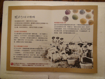 說明書內第一頁是多力米冰淇淋的故事。日本新瀉有越光米冰淇淋,義大利也有米冰淇淋,台灣也該有自傲的米冰淇淋,是多力米冰淇淋的原創動力。2008年當地老米廠─建興米廠為了推廣本土米食文化,設立了多力米故事館,同時也開發了多力米冰淇淋。冰淇淋是以池上大地有機米作為主原料,採用初鹿鮮乳及純天然食材,以義大利冰淇淋Gelato方式製作而成。米本身的澱粉自然甘味不須加很多糖就散發淡淡甜味與米香,熱量比一般冰淇淋少很多,池上米特有的黏Q性也讓多力米冰淇淋不須使用化學安定劑,即有香濃細緻的口感。