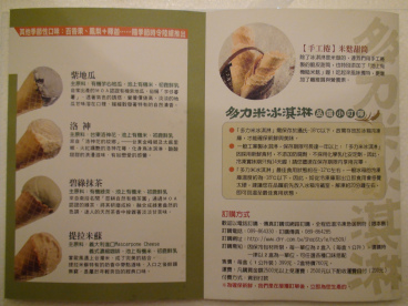 其他季節性口味:百香果、鳳梨+釋迦‧‧‧隨季節時令陸續推出。還推出池上有機糙米麩甜筒。口味果然是台灣味啊!