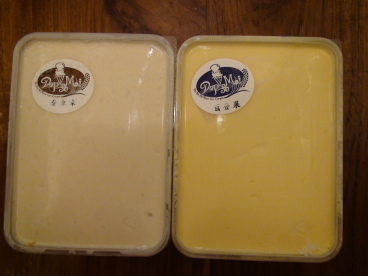 開箱後是我訂的米香和百香果口味。因為是米做的,當然要買米香原味來嚐嚐看,百香果是為了勳寶買的。