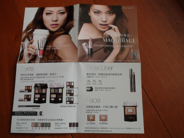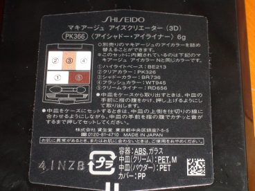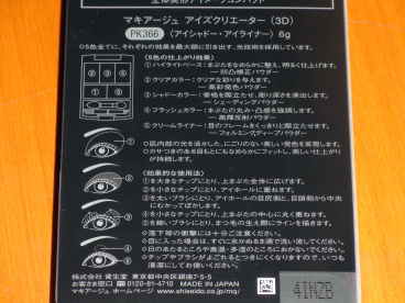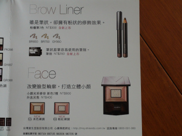 秋天悄悄的現身了,時序進入九月,雖然白天還是豔陽高照,入夜卻已相當涼爽,有時還有點涼意,早晚溫差明顯,想打毛線的念頭已經浮現。看了VoCE中文版創刊號後,購物慾火被撩起,趁著週三下班後,到寶慶遠東的資生堂逛逛,想去看一下由蛯原有里代言的眼影GY867,看了她的CM真的會讓人生火。我過去時,剛好沒有客人,櫃姐親切的幫我試色,可是,上了這盤的我的左眼,卻像被人打了兩拳的瘀青感,頓時熄火了。櫃姐看出我的失望,馬上去拿香里奈代言色PK366讓我試色,她說覺得我的形象和粉紅色眼影比較搭,建議我考慮PK366,櫃姐的親切與耐心一向是我無法招架的弱點,所以我買的PK366,加上外出補妝的coffret d'or口紅已見底,我還一起帶了口紅,眼盤1200+口紅950,打9折。這是我第二次買心機彩妝,第一次是買心機雙頭眉筆(眉筆+眉粉),自從PN系列後,我沒有再買過資生堂彩妝,買心機的眉筆純粹是由PN眉筆的印象延伸,PN眉筆對我來說是CHANEL眉粉餅外最好用的眉筆了。