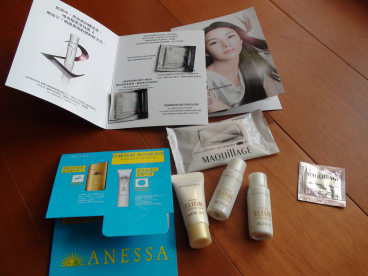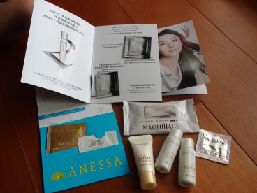 趨黑2的4個試用包+安耐曬金色/白色各1包+新肌密的洗顏乳/化妝水/乳液+心機妝前乳1包+心機春夏粉底液。