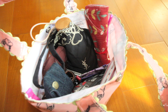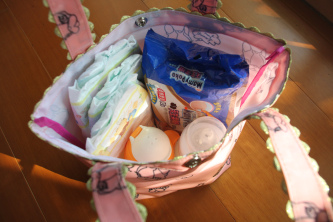 放進去一切OK,若再加個外出奶粉盒和餐具應該也OK。這個袋子的功能就決定是小嬡的外出袋。