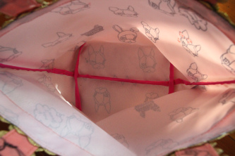 樣式共有7種,只有中間下面和右下角的袋身圖案和別款不一樣,其他都是一個大狗頭配上Crystal Ball的字樣,配色則是黑色配粉紅色。