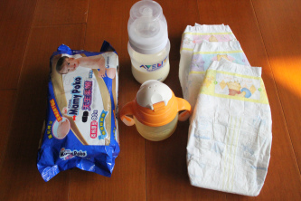 再拿小嬡外出物來測試。濕紙巾、水杯、奶瓶和尿布。