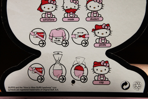 真的粉可愛吧!官網上的教學How to wear a buff,請按此,有圖示教學也有影片教學,當然還是由Kitty示範的最卡哇伊了。