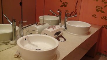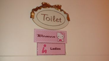洗手間在2F,一上樓梯就可以看見。裝潢都是Kitty很可愛,不過看得出略露疲態,雖然有定時打掃,但不算整潔,讓我有點意外。