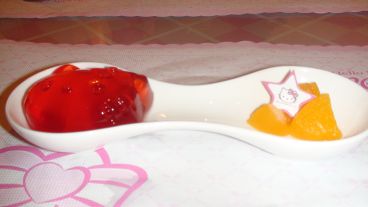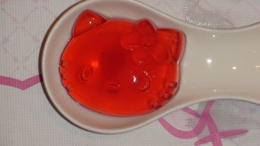 果凍特寫。草莓口味,滑嫩順口。要把可愛的Kitty一口吃下去還真有點捨不得呢!
