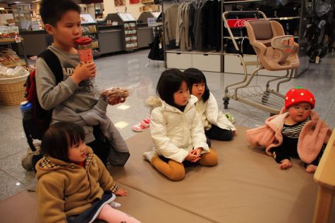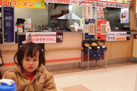 唯一不同的是這邊有特別闢一塊區域供小朋友打發時間,瞧勳寶和小嬡也加入3個日本小孩,一起專注的在看電視,勳寶可真享受,拿著我的隨行杯喝著我的雪泥。