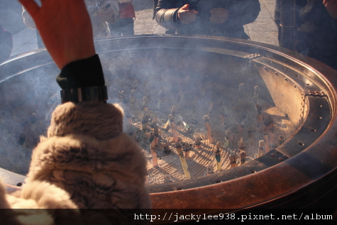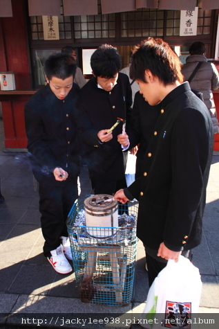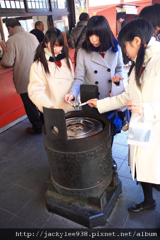 日本人在點香,點香器具和台灣有點不同,台灣現在大多用瓦斯。