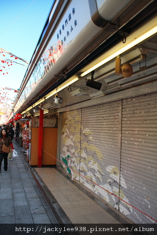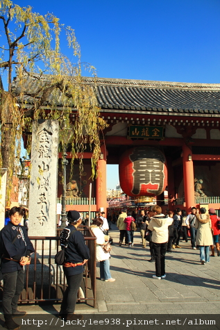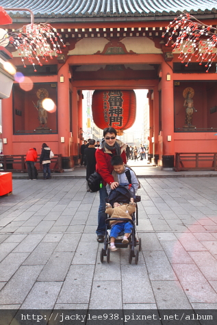 從這邊出去就進入商店街~仲見世通。我推著小嬡站在燈籠下,足見這個燈籠有多麼大。