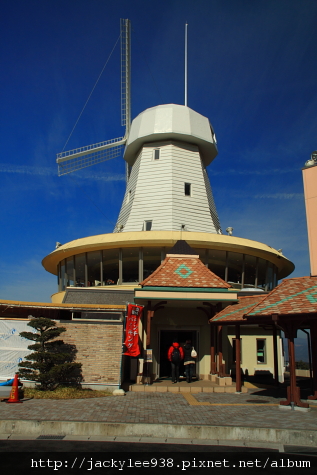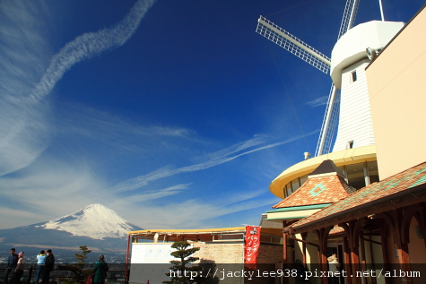 餐廳入口在大風車下面,進入後往上走,用餐區就在中間的圓盤觀景區,邊吃可邊欣賞富士山景,就這一點讓普普通通的餐食大大加分。這間餐廳應該是為觀光客而建的,用餐人士都是不同國家的觀光客,吃的是類中華和日式混合料理的自助餐,我是覺得普普,不會讓我有想多吃一點的念頭。