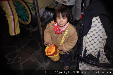 勳寶看到小嬡有買爆米花桶也吵著要,老公帶他去買,要我抱著睡著的小嬡到商店街去等,入夜後的迪士尼寒風不斷,真是很冷,而我卻迷路了,還好問了引導員才找到方向。