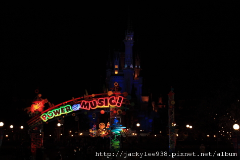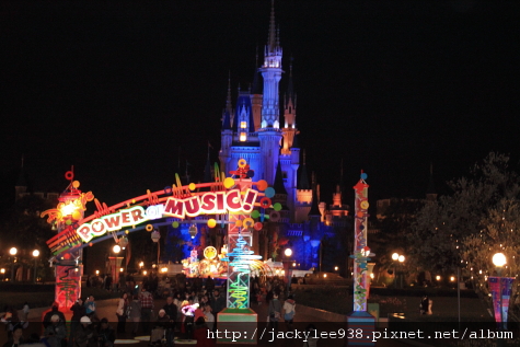 欣賞迪士尼的美麗夜景,因為不能使用腳架,老公花了點時間拍照。
