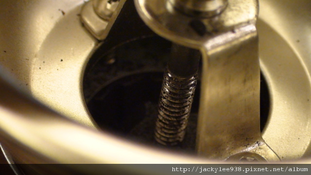 用量匙取約1匙半的Verona咖啡豆,放入磨豆機內試試看,大約要磨5分鐘左右,才能磨好,弄得手滿痠的,磨完後發現大約有快2匙的咖啡粉,所以大概使用1匙咖啡豆就約有1匙的粉量,和說明差不了太多,以後在家可以要喝咖啡時再磨豆了。磨完豆子的磨刀要用小刷子清理一下免得卡粉,可是懶散的我只把它倒一倒和拿廚房紙巾擦擦,看起來也是頗乾淨的。