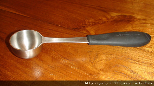 因為Hario濾壓壺沒有附咖啡量匙,所以我買了星巴克的咖啡量匙。本來心中想要買的是綠色的塑膠量匙,量匙本身又是夾子的那款,可是我沒有和店員說清楚,訂貨約1周去取貨,赫然發現居然不是我想要的那一款。那也無所謂,就花了250元把它領回家了。