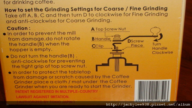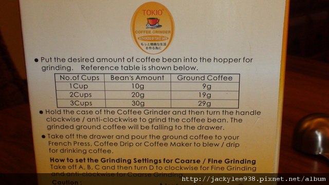 使用說明有英文版和日文版。上面有特別說明若沒有置入咖啡豆,就不要空轉磨刀,免得損壞刀鋒。