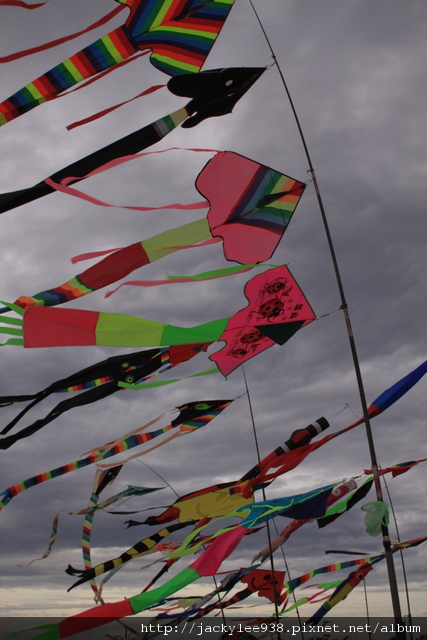 我和小嬡在車程中睡著了,清醒時發現老公把車停在一個很多風箏的地方,我們下去看看先。