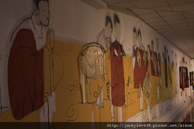 填飽肚子後,就開始參觀,通過入口,沿著階梯往下走進入長廊,左右邊的牆面展示「人間」系列。