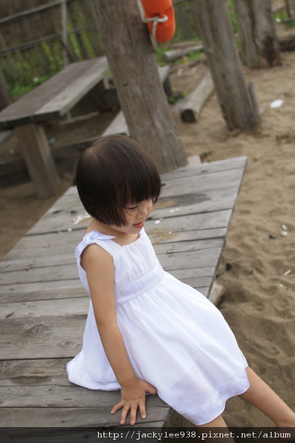 海灘旁有處閒置的小亭,老公幫小嬡拍了幾張照片。