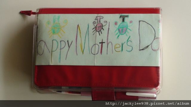 透明套正面內放的是勳寶某年畫給我的母親節卡片。