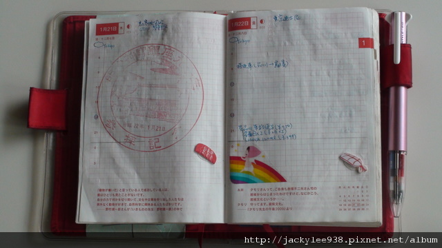 1/21參拜明治神宮的紀念章戳。1/22的女孩貼紙是我在金興發買的韓國貼紙My Little Friend特別版,6張69元,畫風可愛但品質不佳,取貼紙有時會連底紙都一起撕起來。
