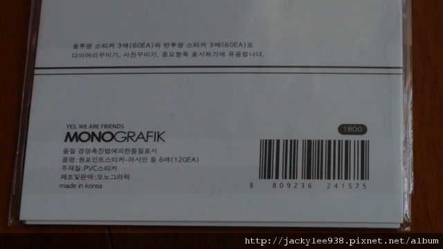 這套貼紙一套6張,共有120小張,要價台幣99元(韓圜只要1,800),俄羅斯娃娃我一口氣買了2套,打算2011年開始使用。