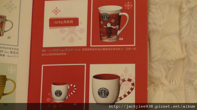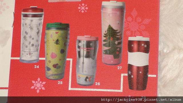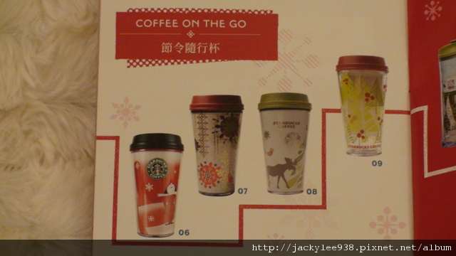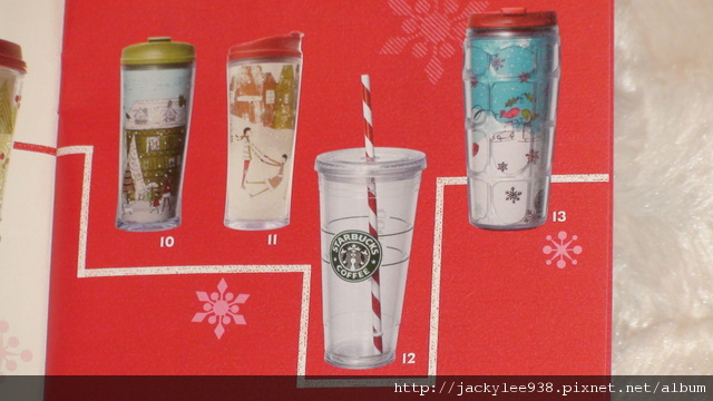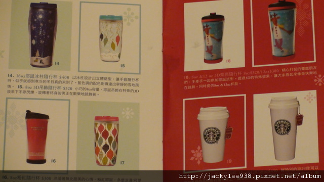 這些是12/9才會上市的,左邊那款很可愛,但是容量很小,10oz,我不會買。左邊過來第2款是20oz;右邊數來第2款是16oz,DM上說杯身有浮凸的星星圖案,到時再去看看囉!
