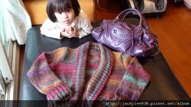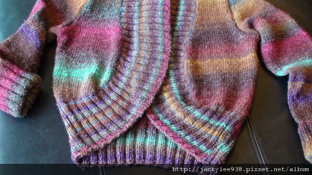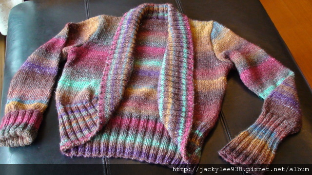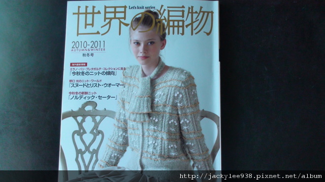 今年秋冬的我編織心一發不可收拾,昨天又完成一件外套,下水定型完成,今天亮相囉!我向來不打花線,庫存也沒有花線,可是看到今年世界編物的花線樣式為之一動,就和羊咩部屋買了8顆花線,10/22興致勃勃準備開打,沒想到剩下半隻袖子待完成時,居然沒線了,只好補1顆線,補線同時的我又花娘心,11/15收到線後先去打斗篷,昨天才把它完成。