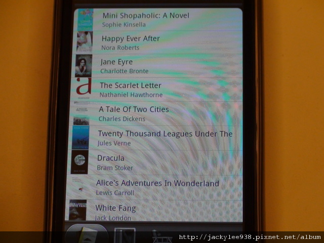 昨天收gmail,才發現原來kobo有給新會員first reader code,於是我又買了1本,是美國羅曼史天后的新作。之前在紀伊國,看到不少她的書,有想過要不要找時間看看。趁著這個機會,買了。右邊那本簡愛,是手機內建的。kobo上有很多免費的電子書可供下載,等以後有空再挖寶。