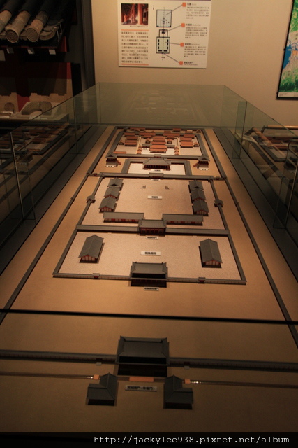 難波宮的模型,10樓有奈良時期的難波宮太極殿,是按原比例復原的,空間很高,有排列整齊的文武百官,小嬡說有點可怕。