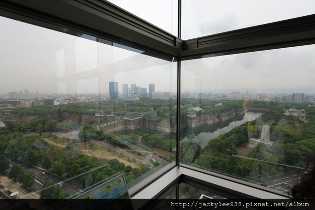 從10樓下9樓的觀景台,看過去被護城河圍繞的就是大阪城了。