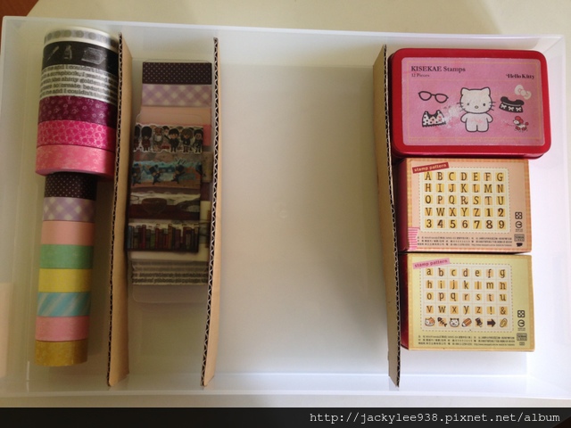 可惜mt 20色盒身太高沒法一起入住。我用紙箱做了隔間,這樣用起來比較順手。